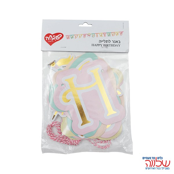 באנר אותיות "Happy Birthday" לתליה צבעי פסטל וזהב