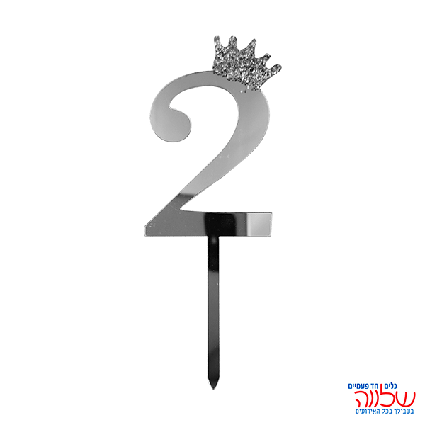 טופר ספרה לעוגה 10 ס"מ מספר-2 כסף