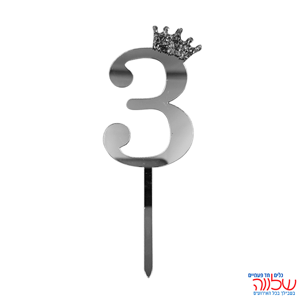 טופר ספרה לעוגה 10 ס"מ מספר-3 כסף