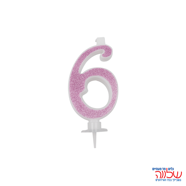 נר מספר נוצץ ורוד "6" קטן