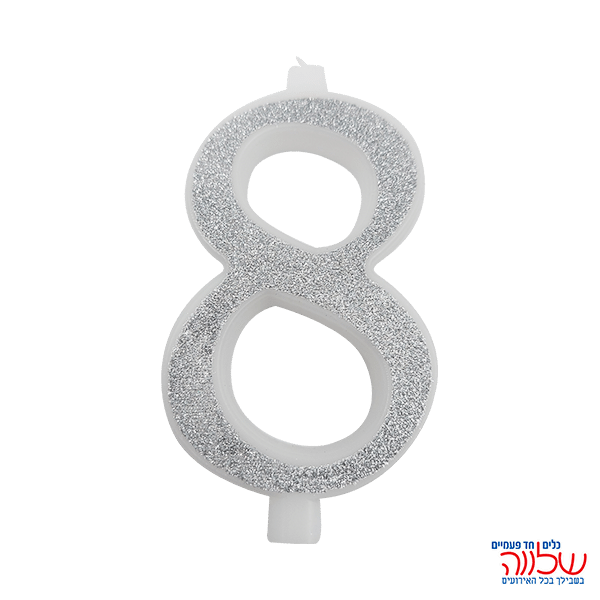 נר מספר נוצץ כסף "8" גדול