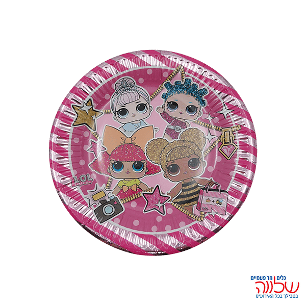 צלחות נייר 20 ס"מ 8 יח' גליטר מטאלי מיני LOL