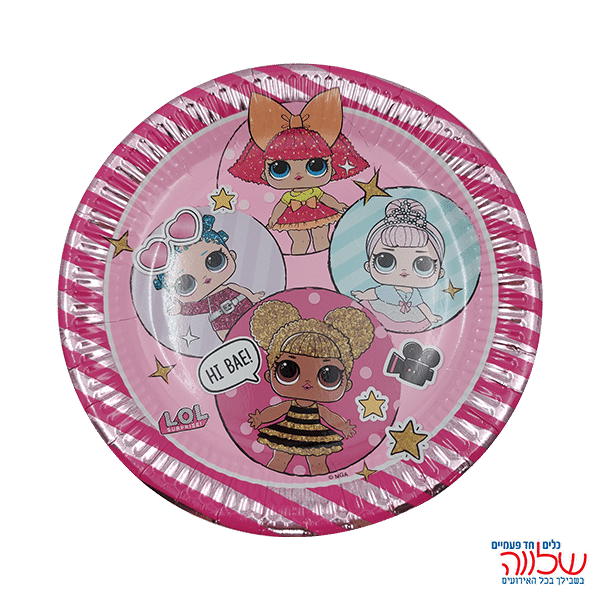 צלחות נייר 20 ס"מ 8 יח' גליטר מטאלי מיני LOL