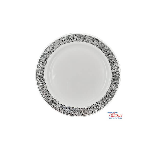 צלחת ססיליה 10" לבן כסף 10 יח'