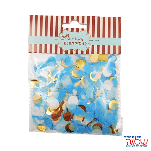 שקית קונפטי תכלת/לבן/זהב Mix
